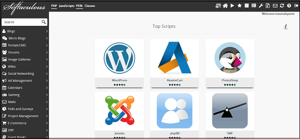 When you will click on Softaculous Installer in the Software section, it will take you to the App installer interface.